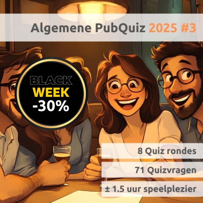 Van maandag 24 november tot en met maandag 1 december (Cyber Monday) profiteer je van 15% tot 30% korting op een selectie van onze leukste quizzen! Bekijk ze hieronder of direct in de shop.