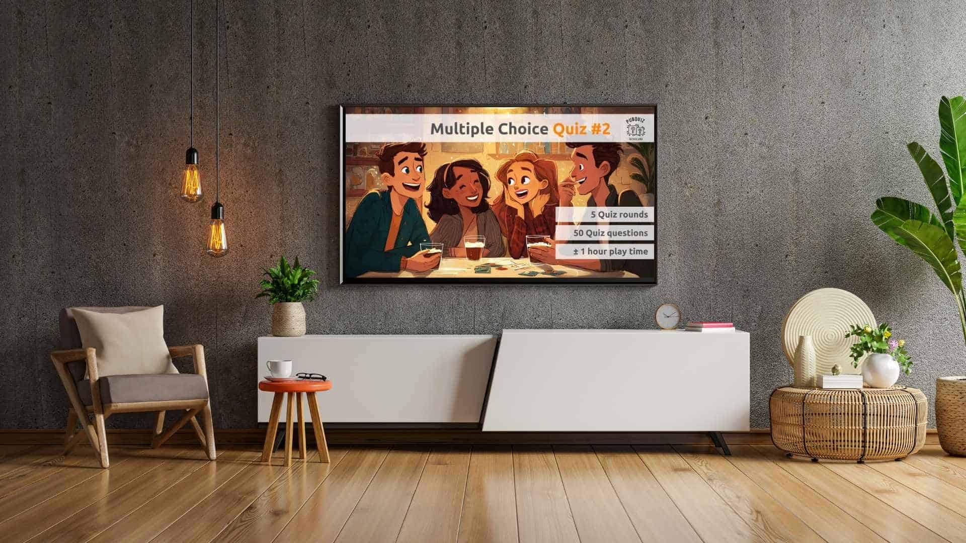Klaar voor een leuke quizavond? Met de Engelse versie van de Meerkeuze Quiz #2 krijg je 50 quizvragen, verdeeld over 5 rondes. Met thema’s zoals plaatjes, muziek, sport, kunst & cultuur en meer. Ideaal voor een gezellige PubQuiz met vrienden, familie of collega’s!