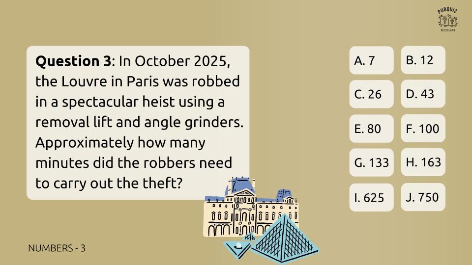 - Ronde 3: Getallen (10 vragen waarbij het antwoord steeds een getal bevat)